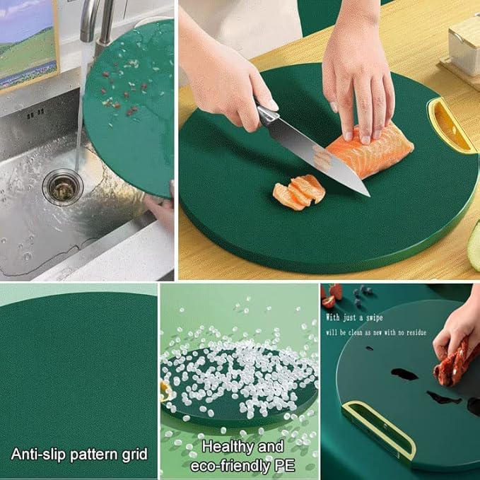 Chopping Board Can Be Vertical Double-sided Antibacterial and Mildew Proof Round Food Grade PE Nordic Green Cutting Board